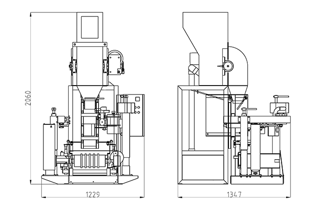 由半自动包装机与扎带机构、输送机构组成,实现全自动包装、扎带动作。